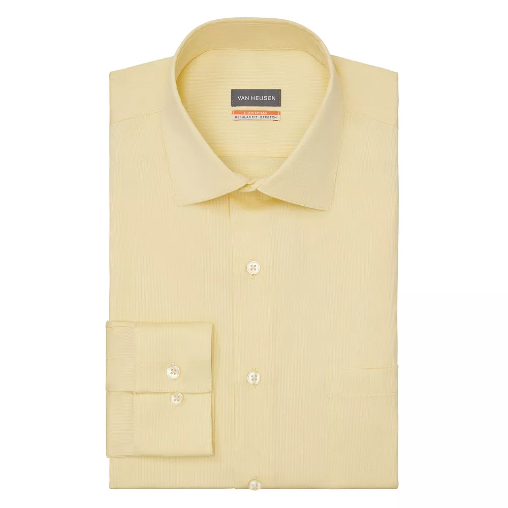 Dress for success. Achieve a sophisticated look at the office or any special event thanks to this stylish men’s dress shirt from Van Heusen.