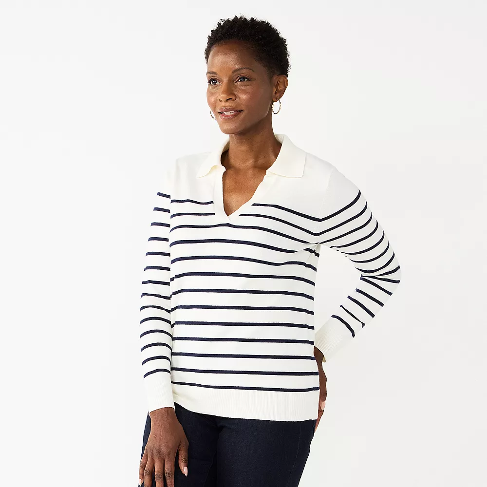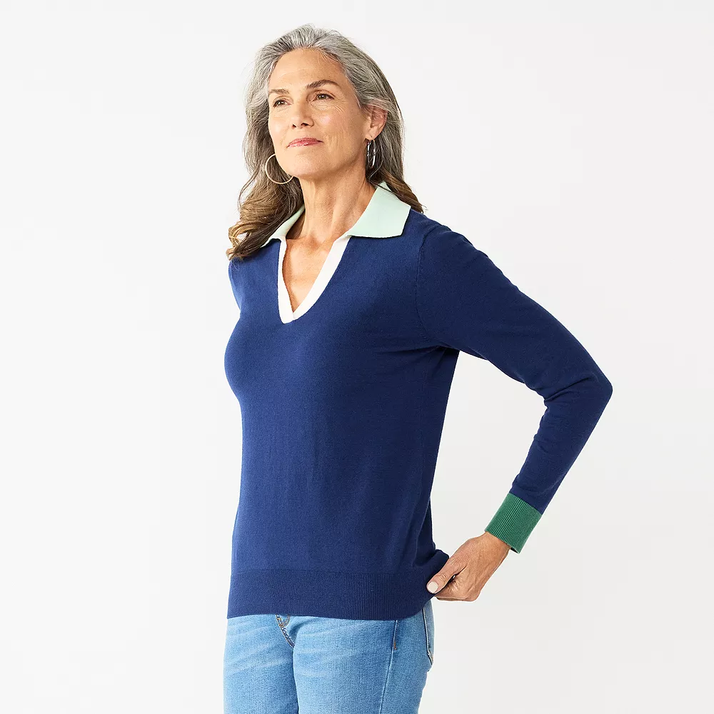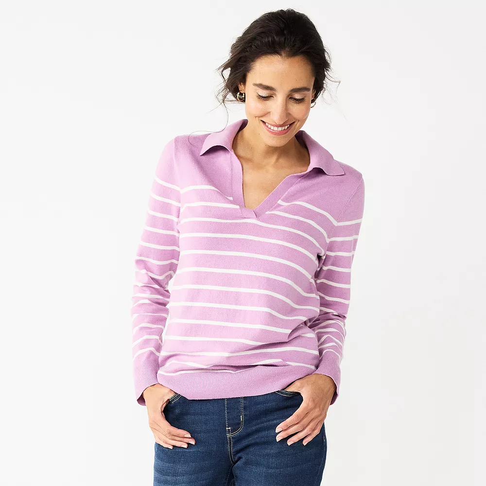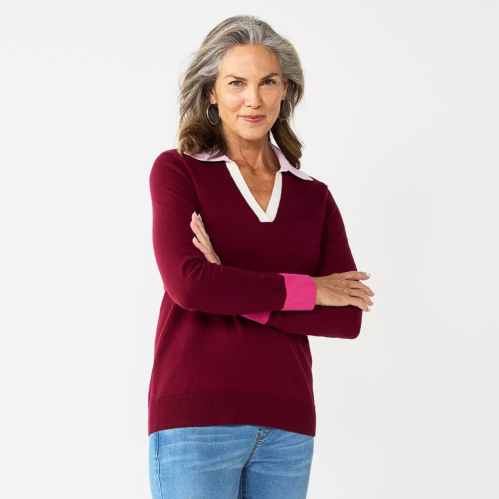 Update your cool weather wardrobe with this women’s polo collar sweater from Croft & Barrow.