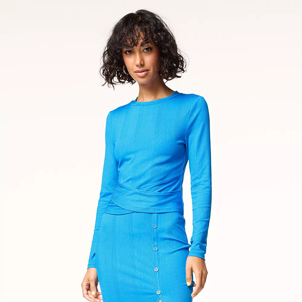 Upgrade your casual basics with this women’s INTEMPO crop top, featuring a crossover hem.