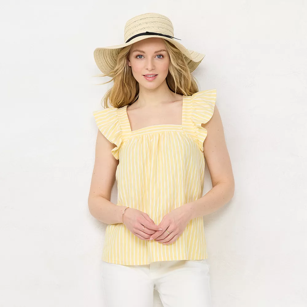 Show off your sweet summer style with this women’s ruffle sleeve cross-back top.