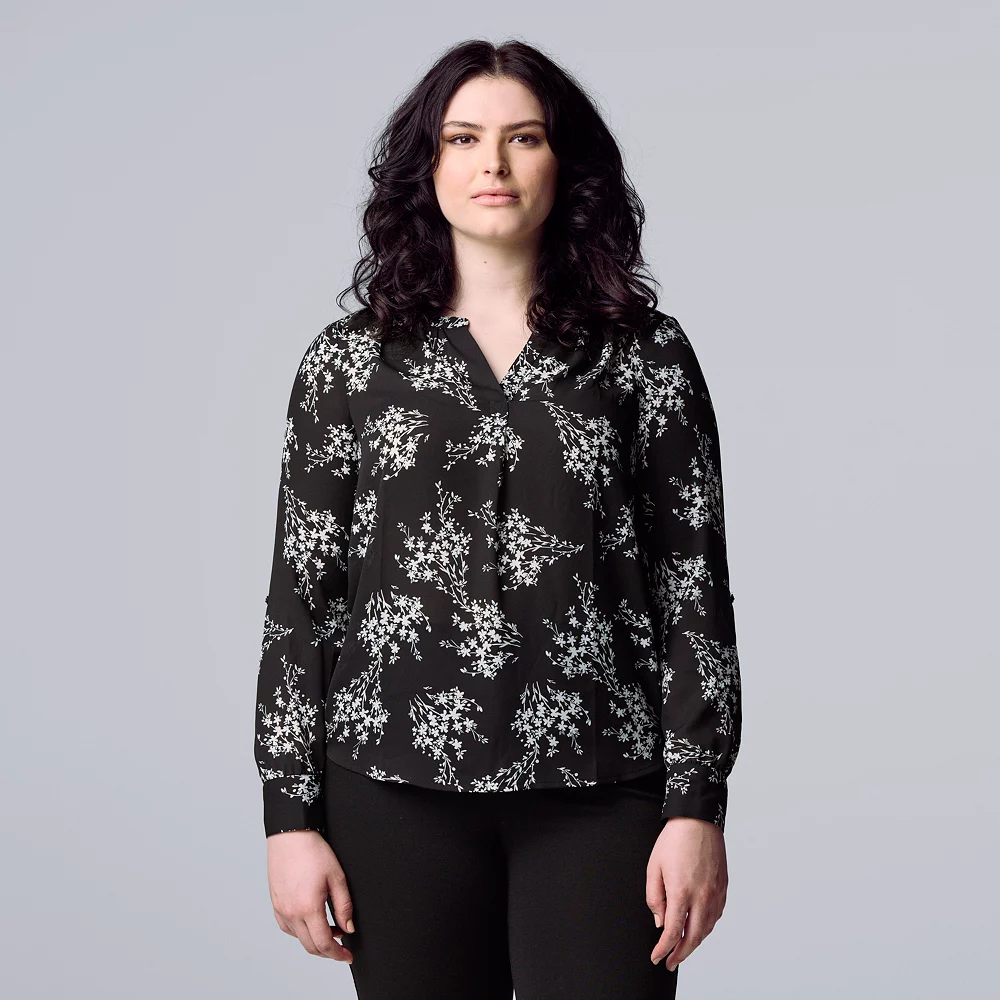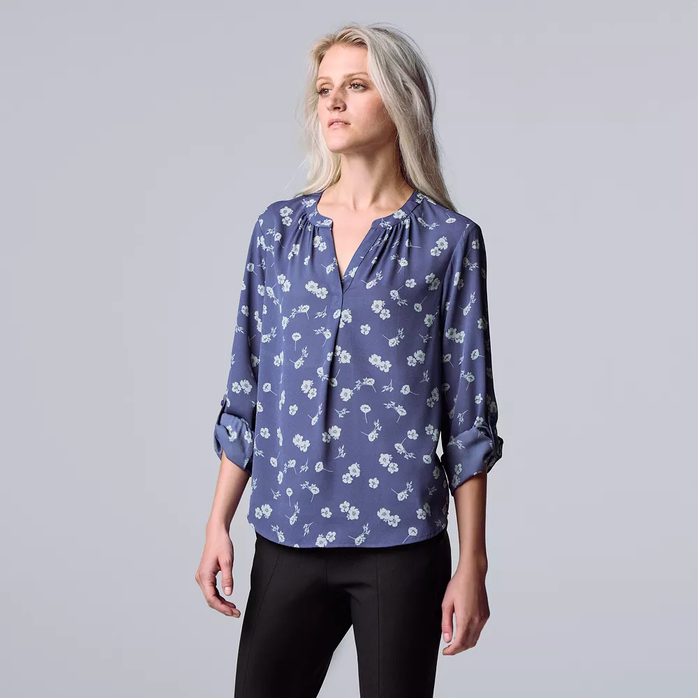 You’ll love the chic, casual style of this women’s Simply Vera Vera Wang roll-tab popover top.